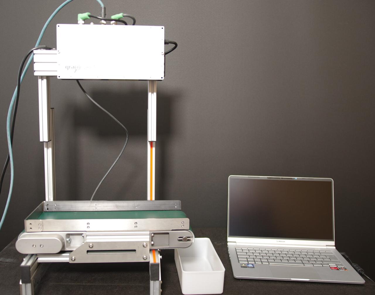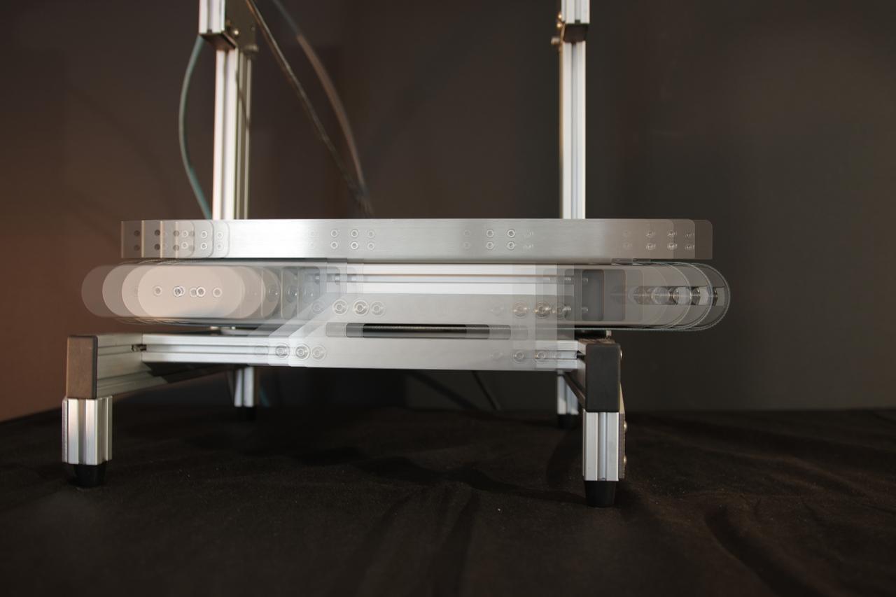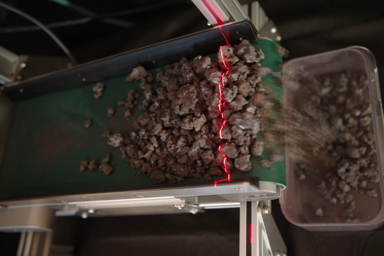High-precision (<0.1mm) laser scanner works in tandem with precise conveyor band. As a safety measure, the conveyor motor is programmed with torque limitation, to be sufficient for probe transport but cause no harm in case of accidental operator contact. Laser data are fed to the computer which is able to reconstruct the material surface with high accuracy for subsequent analysis.
