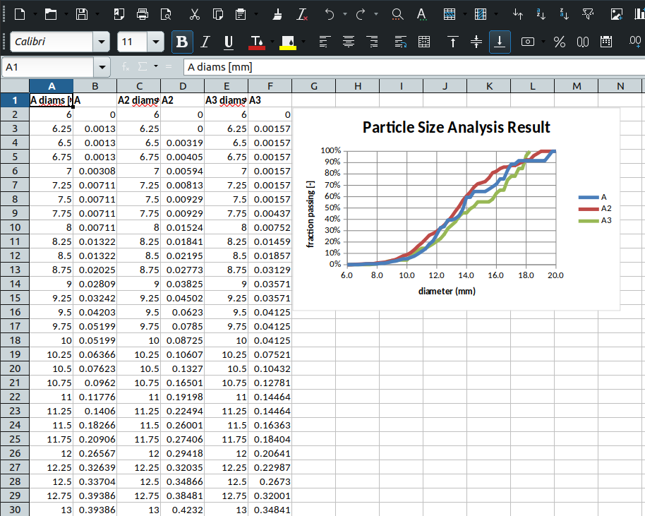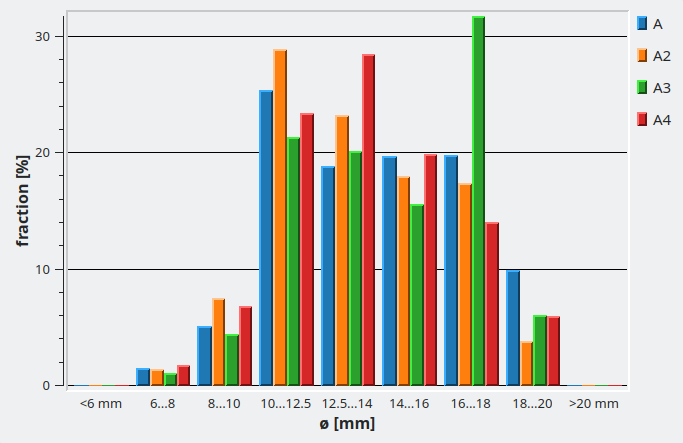 The analysis runs on preinstalled computer using our specialized software. Several analysis algorithms are provided out of the box. One family of analyses identifies each grain while other processes the measurement in a global fashion (fractal and spectral analysis). Quick data presentation (cumulative size distributions, histograms, average PSD, …) is provided, with the possibility of exporting data in standard formats (such as XLS, but also raw data for scientific visualization); integrations with your workflow are available as enhancement.